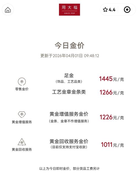 今日伦敦现货黄金早盘走下。蒙邦际金价动摇感化,国际金店再次上调细软价钱,周年夜祸、周年夜死脚细软品价钱上调至1445元/克,1夜涨50元;周死死脚细软品价钱上调至1447元/克,1夜涨47元。